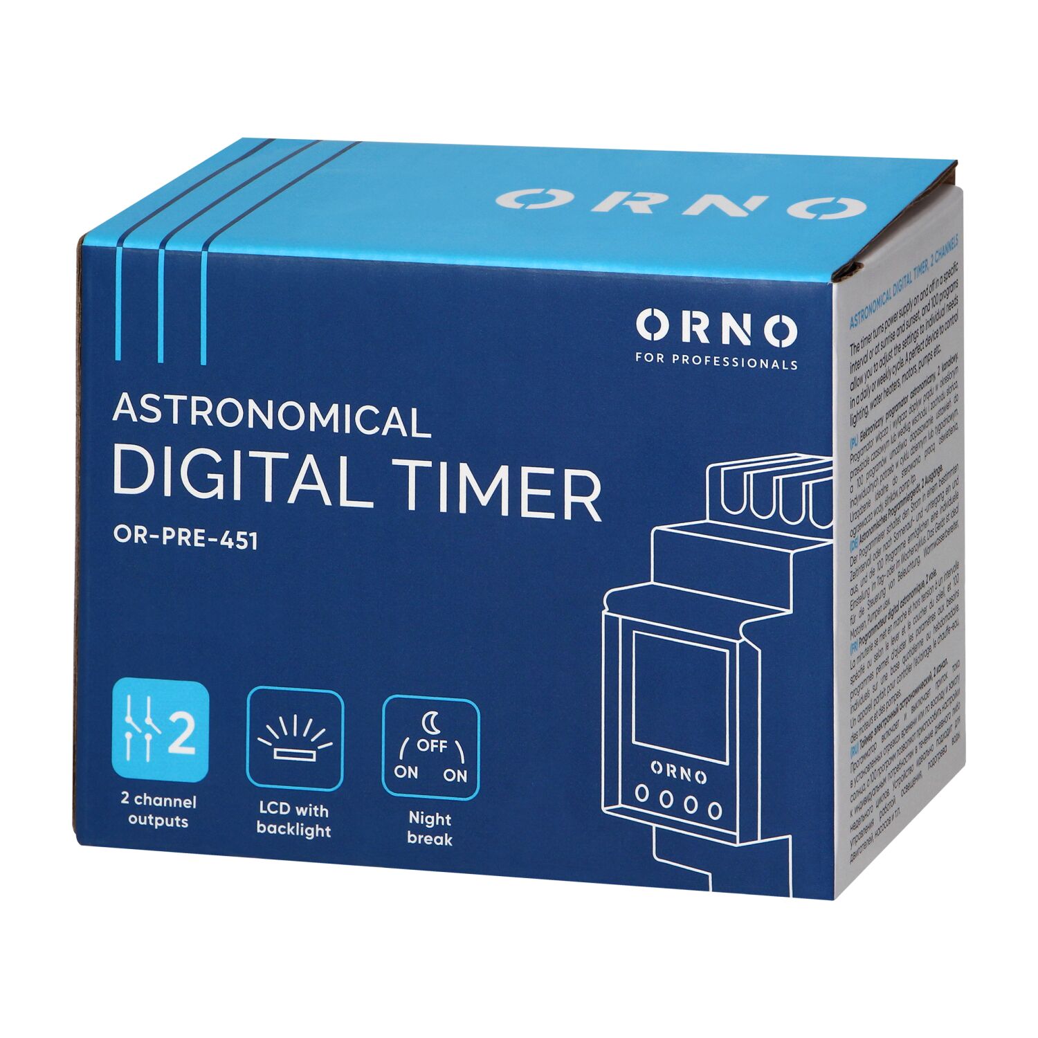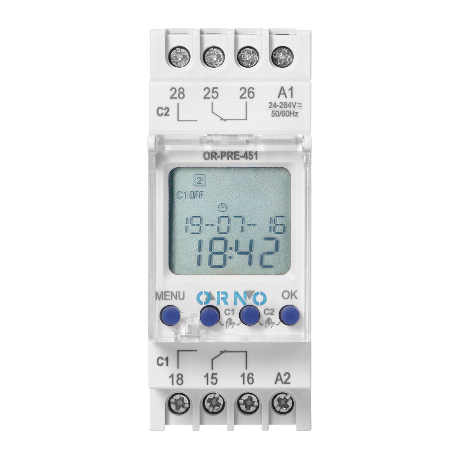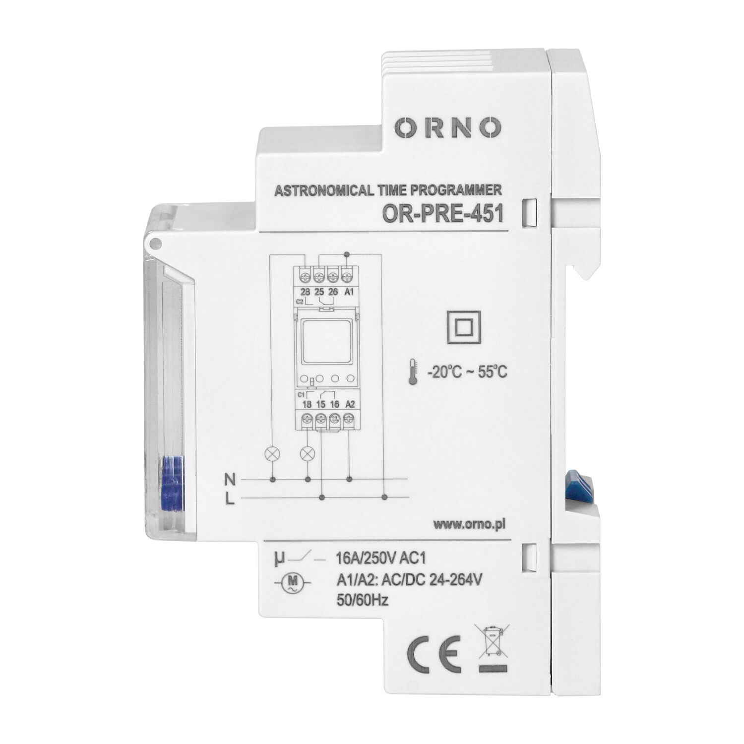 Multifunkčný časovač vhodný v každej domácnosti a firme, navrhnutý na montáž na DIN lištu. Umožňuje vám jednoducho šetriť elektrinu a uľahčuje používanie rôznych elektrických zariadení. Vstavané astronomické hodiny počítajú časy východu a západu slnka v pevne stanovenom geografickom pásme a oblasti. Programátor zapína a vypína napájanie v konkrétnom časovom intervale a 100 prepínacích bodov vám umožní upraviť nastavenia podľa vašich individuálnych potrieb. Typy programov: týždenné, ročné a astronomické. Režimy prevádzky: manuálny, automatický, sviatový, náhodný. Automatické zimné prepínanie. Vďaka astronomickému programu zapíname zariadenia podľa východov a západov slnka a nezávislý časový program umožňuje dodatočné nastavenie intervalov, v ktorých sa zariadenie zapne, t. j. takto môžeme definovať nočnú prestávku. Zariadenie je ideálne na ovládanie prevádzky osvetlenia, ohrievača vody, motorov, čerpadiel a podobne. Má zabudovanú batériu, ktorá udržiava nastavenia hodín v prípade vypnutia napájania.